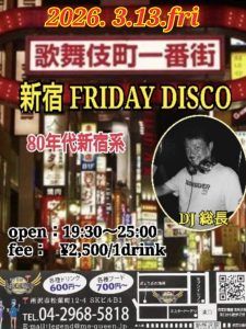 🚹3,500円 /with 1 Drink 🚺 3,000円 /with 1 Drink 新宿ディスコ 1975~1983年