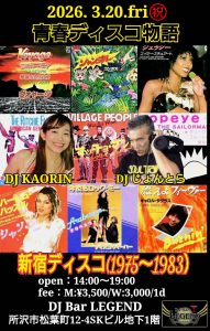 【 青春ディスコ物語 】 DJ じょんとら / DJ KAORIN open: 14:00 ~ 19:00