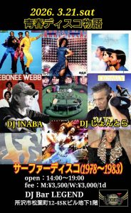 【青春ディスコ物語】 DJ じょんとら / DJ INABA open: 14:00 ~ 19:00