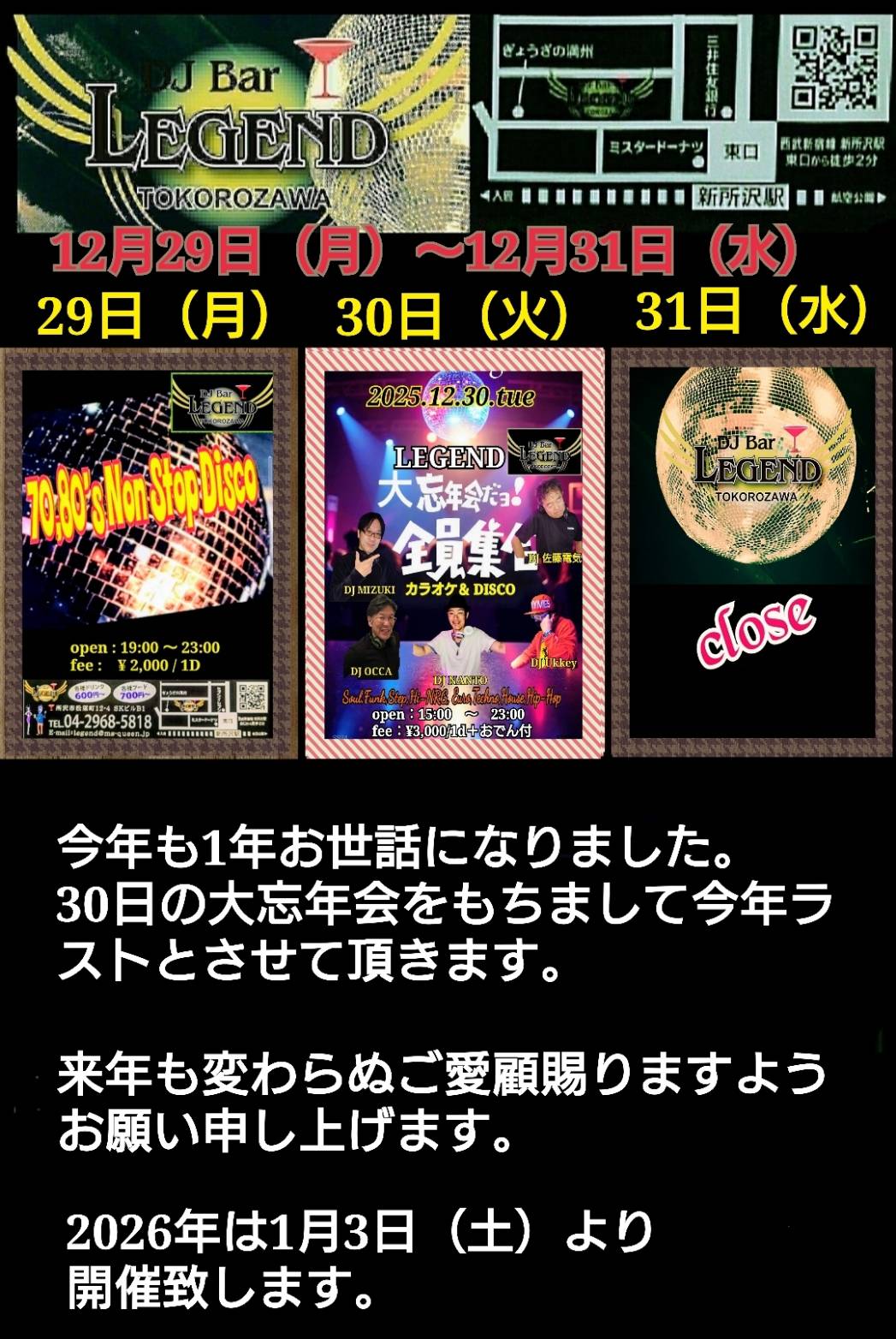 ◆12月29日mon 『70.80’s Non Stop Disco』 70年代、80年代 non stop Mix