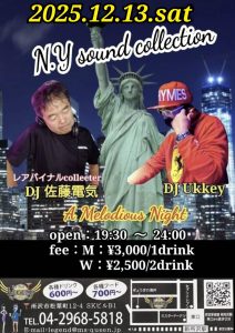 ◆ 12月13日sat 【 N.Y sound collection 】 DJ 佐藤電気 / DJ Ukkey open:19:30 ~ LAST