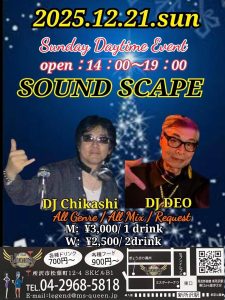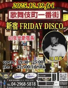 ◆ 12月 7日sun 『70.80’s Non Stop Disco』 70年代、80年代 non stop Mix